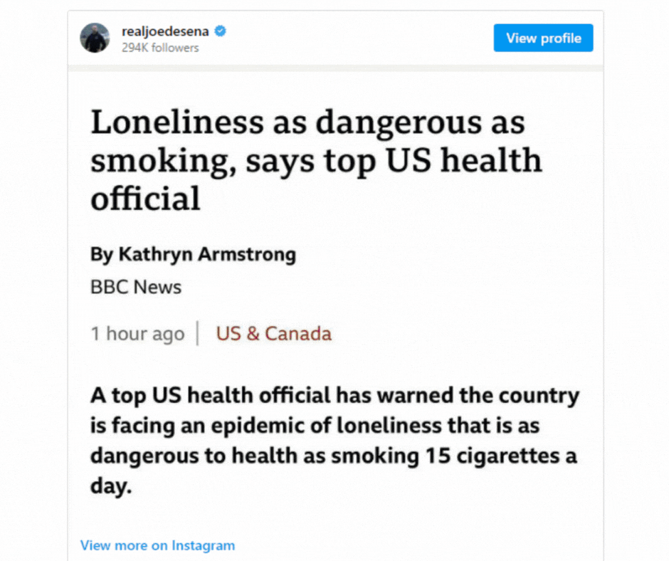 Lacking social connection is comparable to smoking up to 15 cigarettes per day.