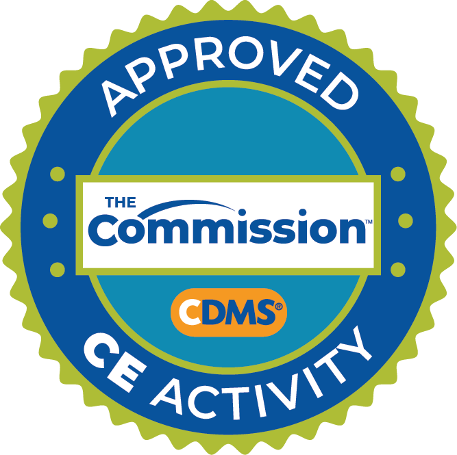 Thank you for submitting a CDMS® CE activity to The Commission's Continuing Education Approval Program™ (formerly PACE). Once your application has been approved by The Commission™, you may use the seal to promote* your activity. By using this, the provider agrees and understands that the seal may only be used/reproduced as intended and in its correct and present form, with no changes or modifications made.